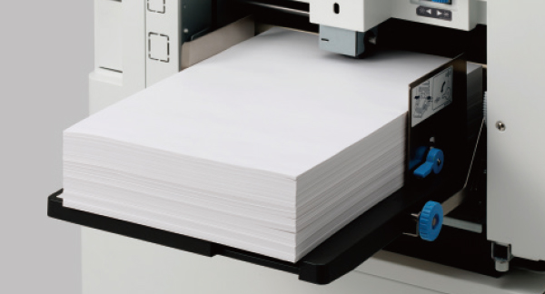 The paper trays have a capacity of 1000 sheets* for both feeding and receiving, which ensures uninterrupted printing over a longer period.
