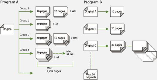 For example, you can print question papers for three different classes, A, B and C, that contain different numbers of students. Simply set up the program, place the three original tests in the Auto Document Feeder and press “print” — you’ll automatically receive the required numbers of each individual test.