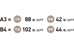 ※2:普通紙、標準設定連続プリント、GDフェイスダウン排紙トレイ使用時。