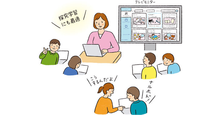 ICTに不慣れな先生でもすぐに授業に取り入れられるよう、わかりやすく簡単な授業パッケージを用意。単元に紐づいた授業計画も用意されています。教材は小学校の全学年対応で、さまざまな教科学習の補助教材に使用できます。教材の配信や提出ボックス機能はクラス別や習熟度別など任意のグループ分けにも対応可能です。子どもたちが自発的に取り組みたくなる設計で協働的学びとの相性も抜群です。