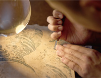 引箔の技術を活かし、箔を中心にさまざまな素材を活用して絵を描く「箔画」を考案。絵と写真の両方から学んだデッサン力や構図、そして受け継いできた伝統技術を掛け合わせ、独自のジャンルを確立した野口琢郎さんにお話をうかがいました。