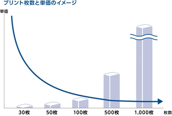 原稿をマスターに製版してプリントする仕組みのため、同一原稿の場合、プリント枚数が多いほどプリント単価が安くなり、経済的なコストで多枚数プリントができます。1枚プリントするごとに、カウンター料金がかかることもありません。
