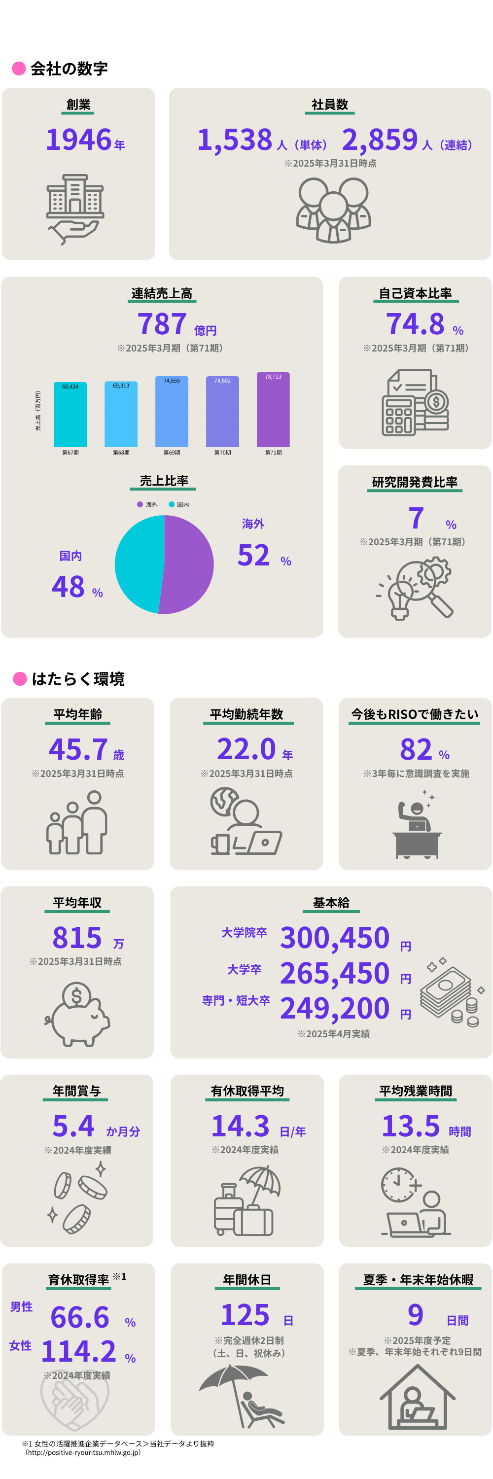 様々な数字から、理想科学のこと、理想科学で働く人のことをご紹介します。