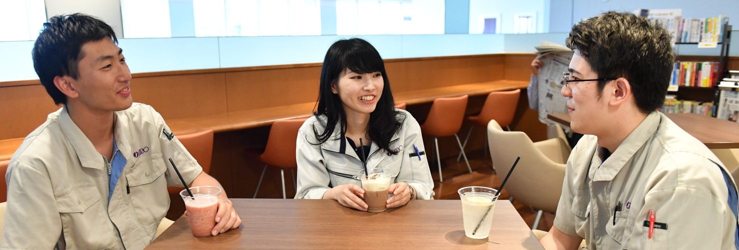 また、理想開発センターでは、定期的にカフェテリア などで社員同士の交流会が開かれます。日頃の業務では、なかなか話す機会のない社員とも交流することができます。部署や世代をも越えたコミュニケーションがとれるので、新しいアイデアが生まれたり、仕事に活かせるヒントが得られたりする貴重な場となっています。