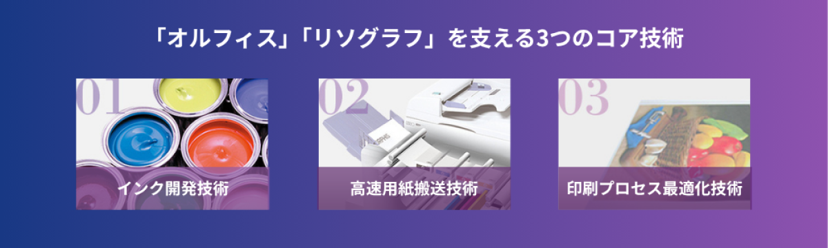 インクジェット方式を採用した「オルフィス」と孔版印刷方式を採用した「リソグラフ」を通じて