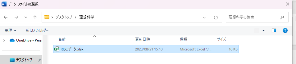 ワードにエクセルのデータを反映させます。以下の手順で行います。